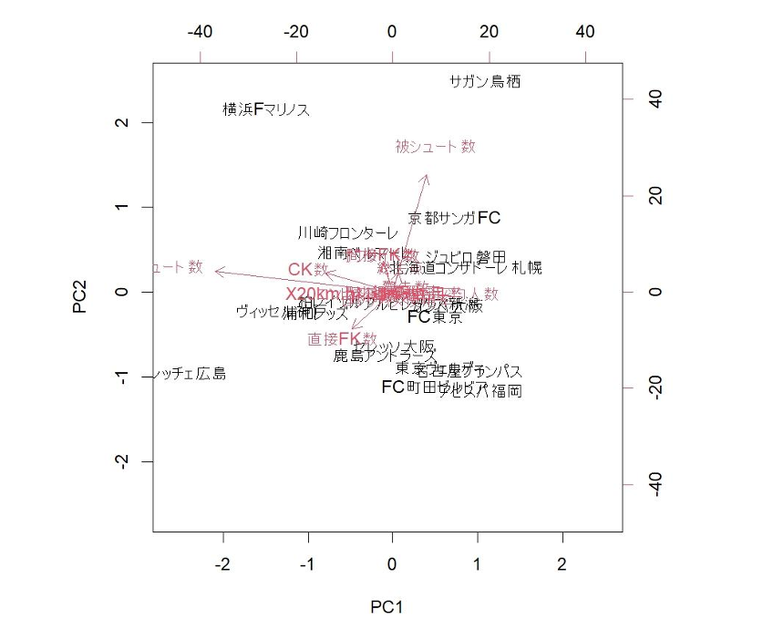 私は最終レポートでは私の好きなJ1のサッカーチームのスタッツについて主成分分析を行いました。